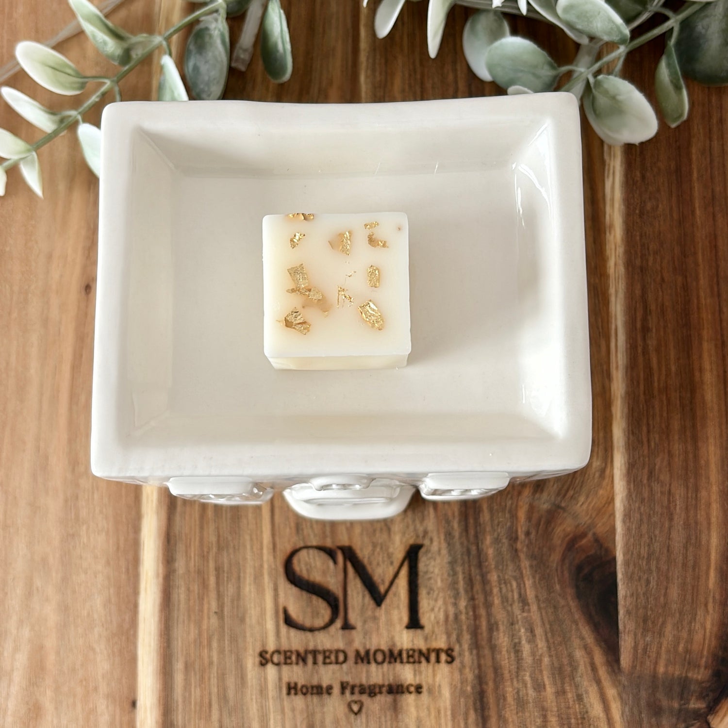 Add a touch of elegance and glamour to your home fragrance collection with these beautiful gold leaf flake wax melts