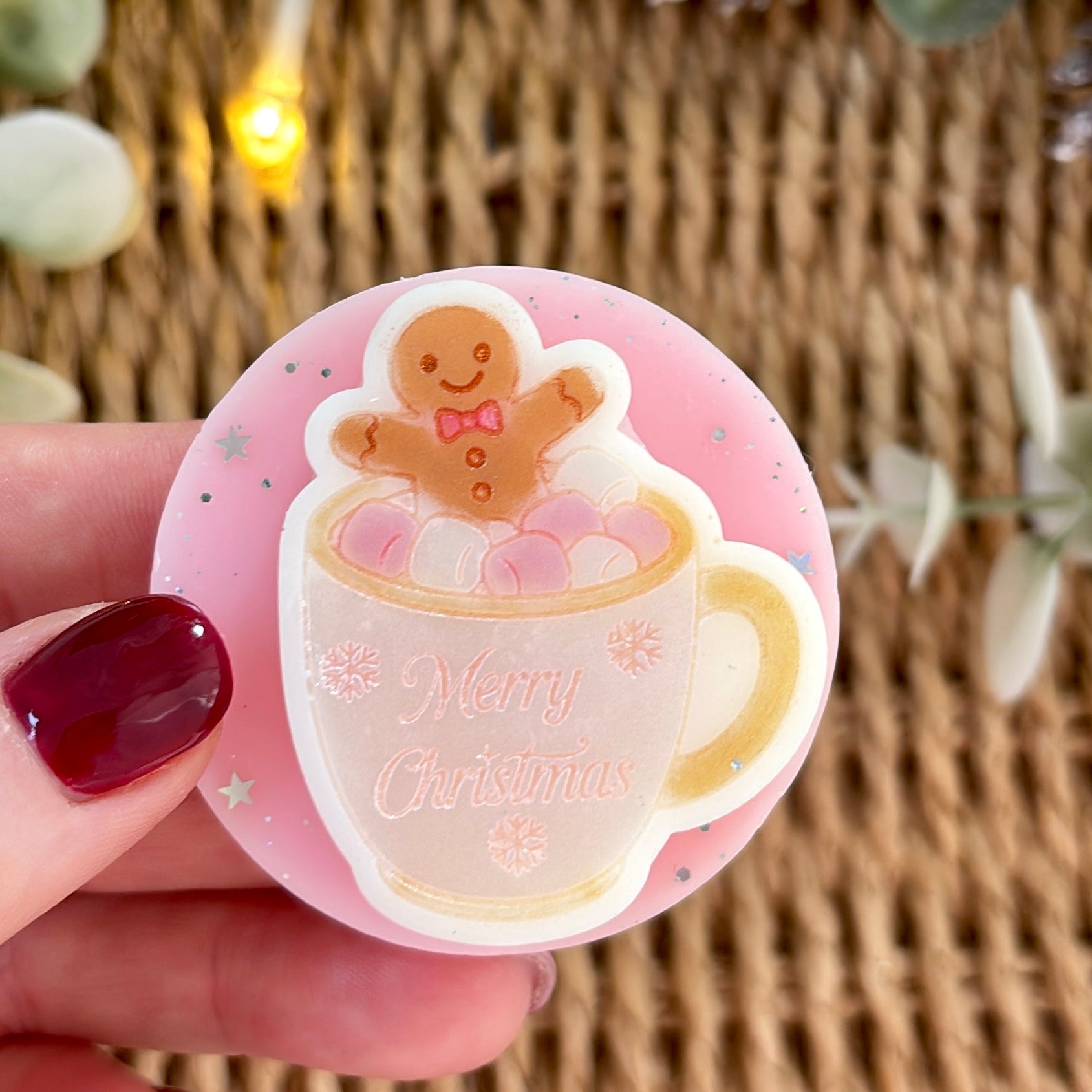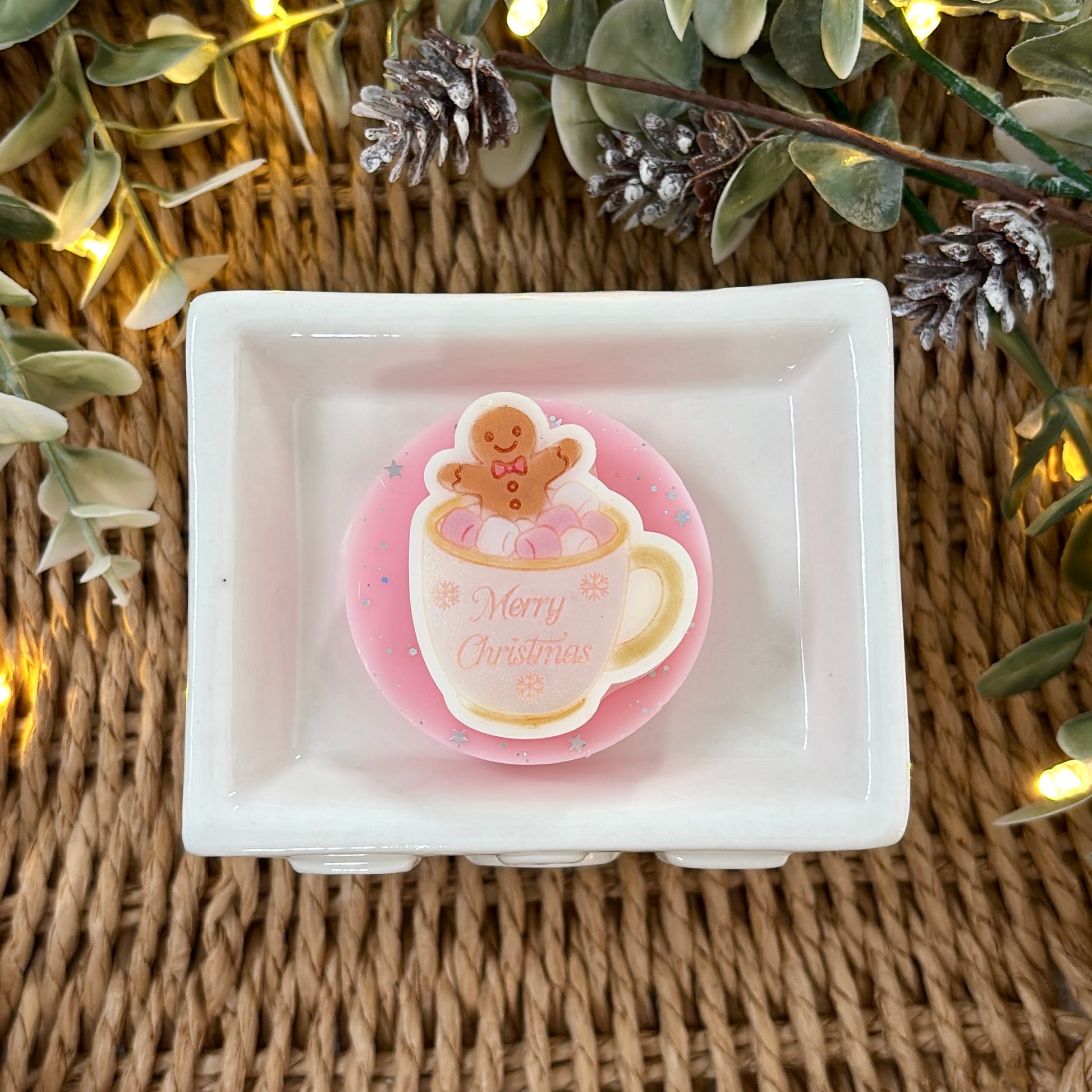 You will receive 1 adorable gingerbread man in a cup wax melt slab