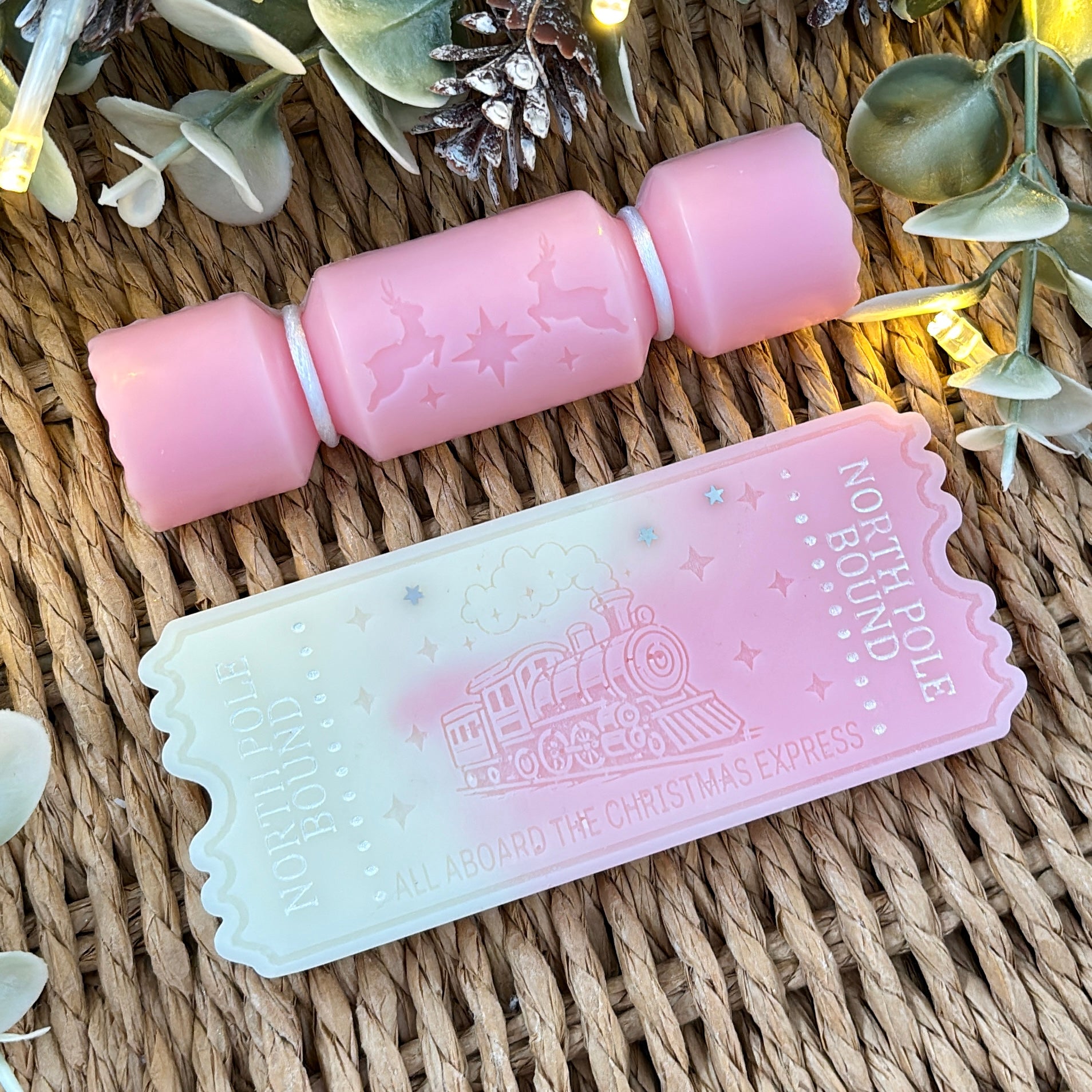 You will receive 1 white & pink express ticket wax melt and 1 pink Christmas cracker wax melt